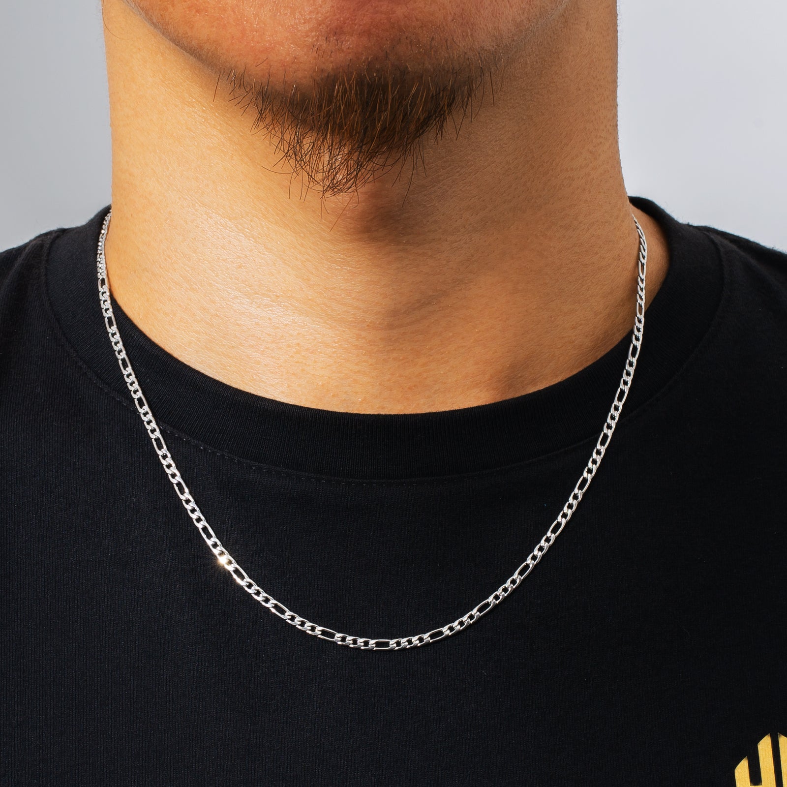 大きなコマと小さなコマをつないだチェーンはフィガロチェーンです。欧米で人気あり、特にフランスで一番人気なチェーンタイプです。喜平チェーンよりもパーツの間隔が離れているので、ヘビー過ぎない雰囲気に仕上がっています。
