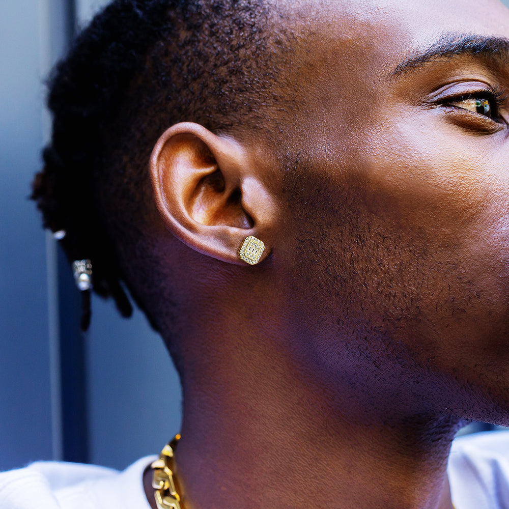 留められたジルコニアが輝く、モダンな雰囲気のピアスです。角度を変えると輝きの濃度が変わり、キラキラととてもおしゃれです。さりげなく耳元を飾ってくれるアイテムで、男女共にご使用いただけます。